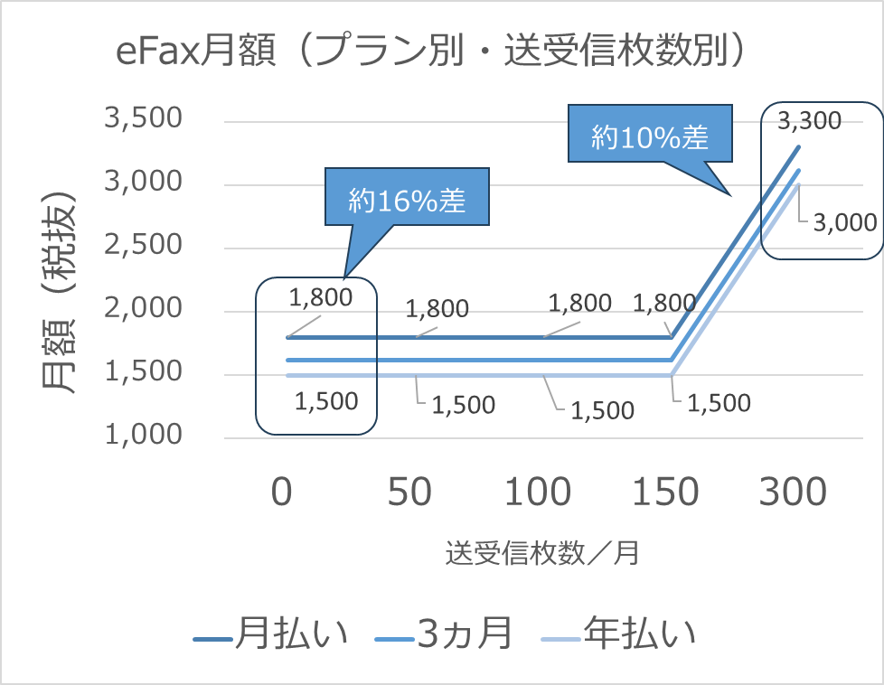 利用頻度が高く、毎月送受信計100ページくらい発生するような場合にはお得になり、逆に、利用頻度が月1回のように少なく、送受信枚数も毎月数頁程度であれば、お得感はうすれます。