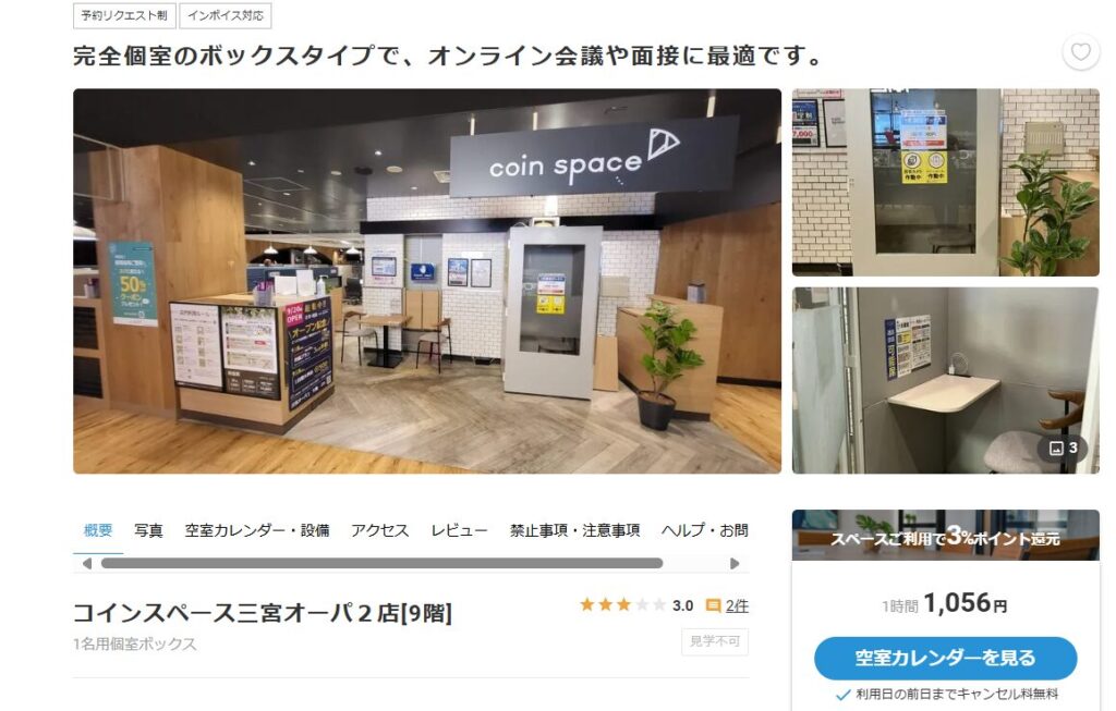 (*) 口コミ・評判は、当該スペース内の特定の個室に関する感想です