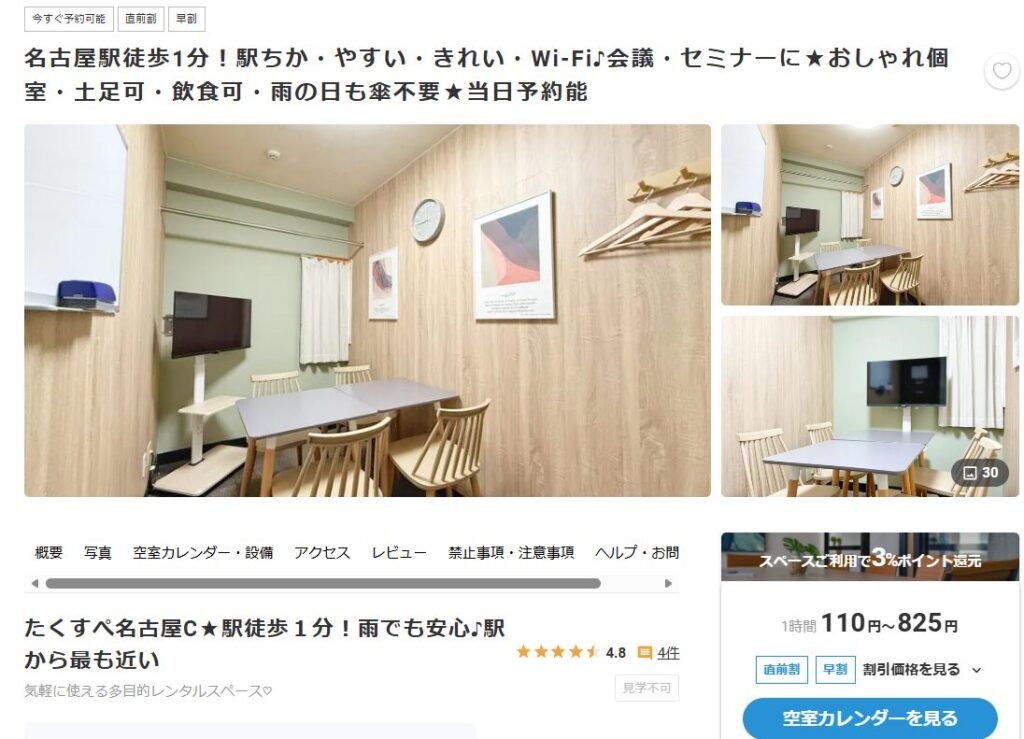 | ② たくすぺ名古屋B | 徒歩 1分 | 60分 110~869円 |